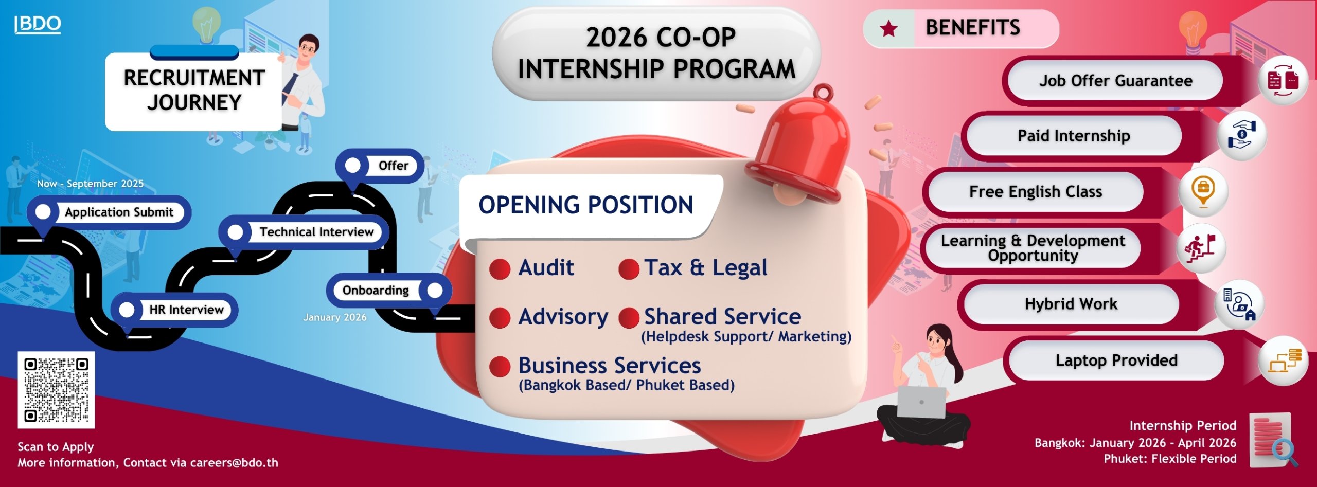 For more information, please contact the P&C team at 02-636-0354 or email careers@bdo.th